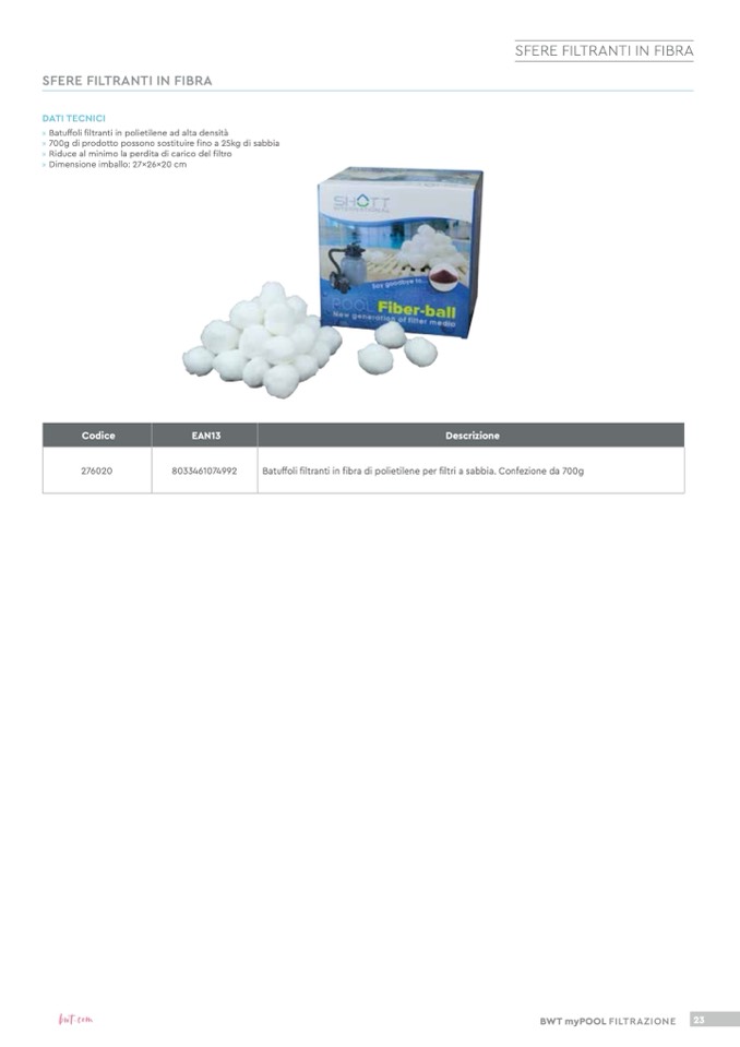 Batuffoli filtranti in fibra di polietilene per filtri a sabbia. Confezione da 700g