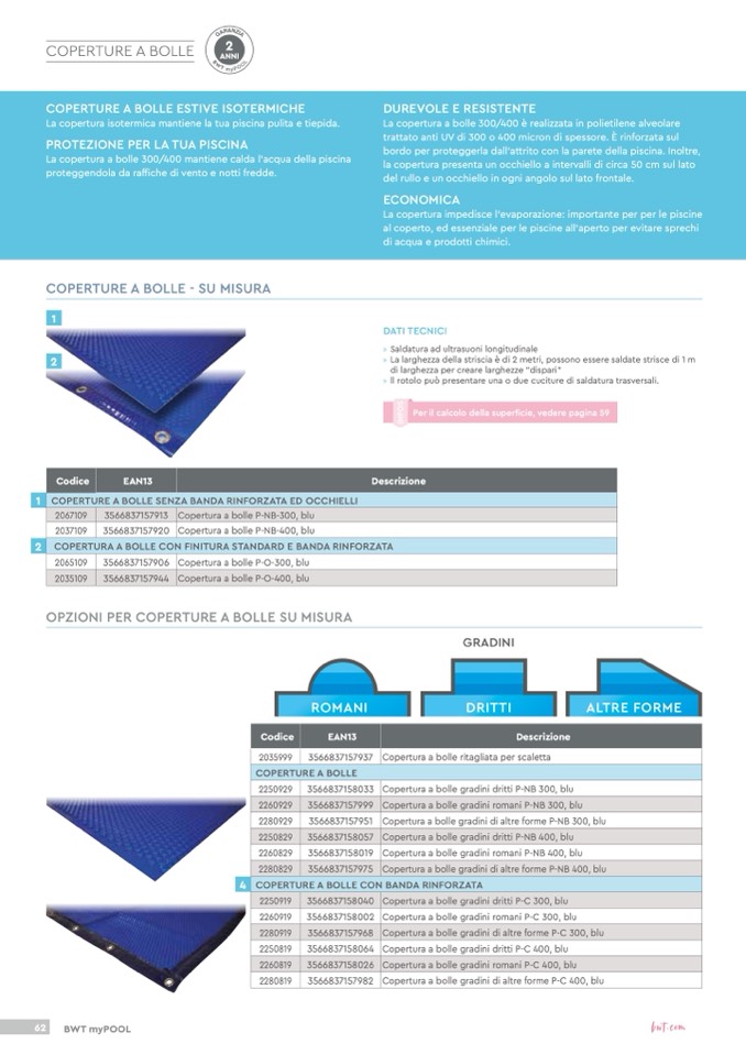 al coperto, ed essenziale per le piscine all'aperto per evitare sprechi
