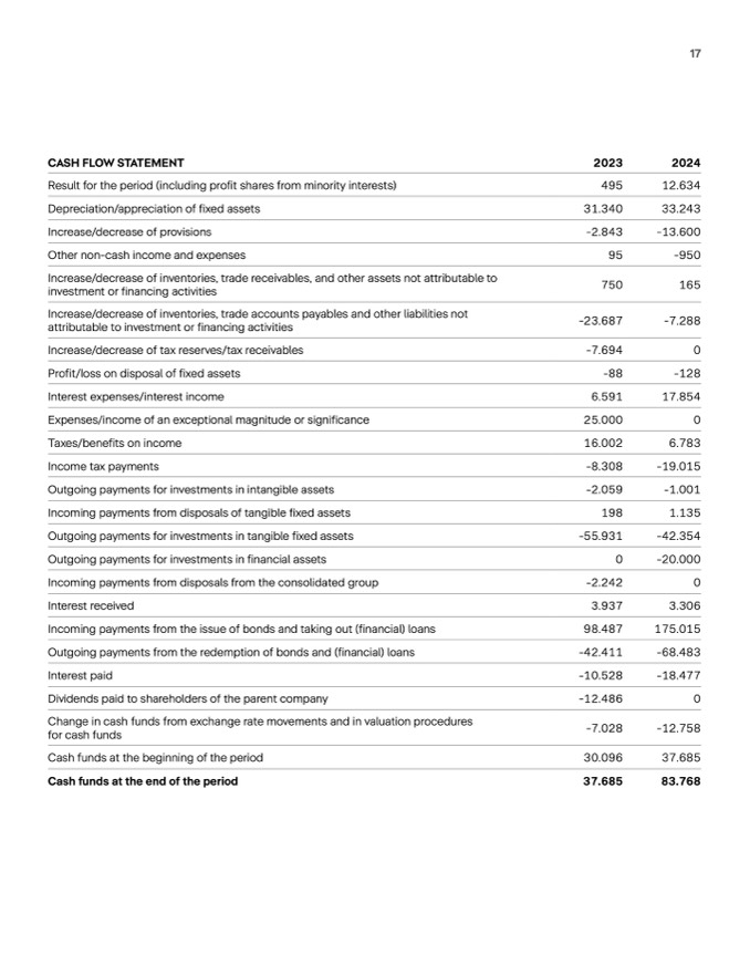 Change in cash funds from exchange rate movements and in valuation procedures
