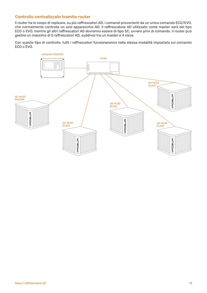 Il router ha lo scopo di replicare, su più raffrescatori AD, i comandi provenienti da un unico comando ECO/EVO,