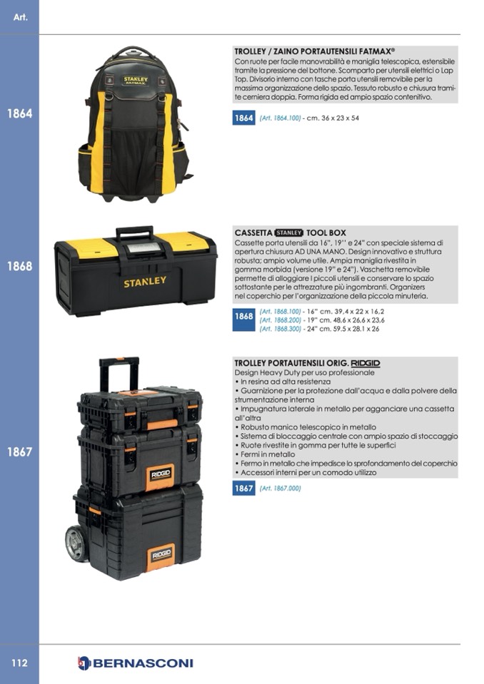 Cassette porta utensili da 16”, 19’’ e 24” con speciale sistema di