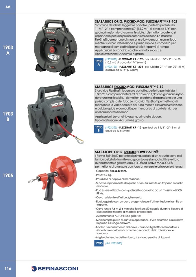 (1903.100) - FLEXSAHFT K9 - 204 - per tubi da 2”- 4” con 70’ (21 m)