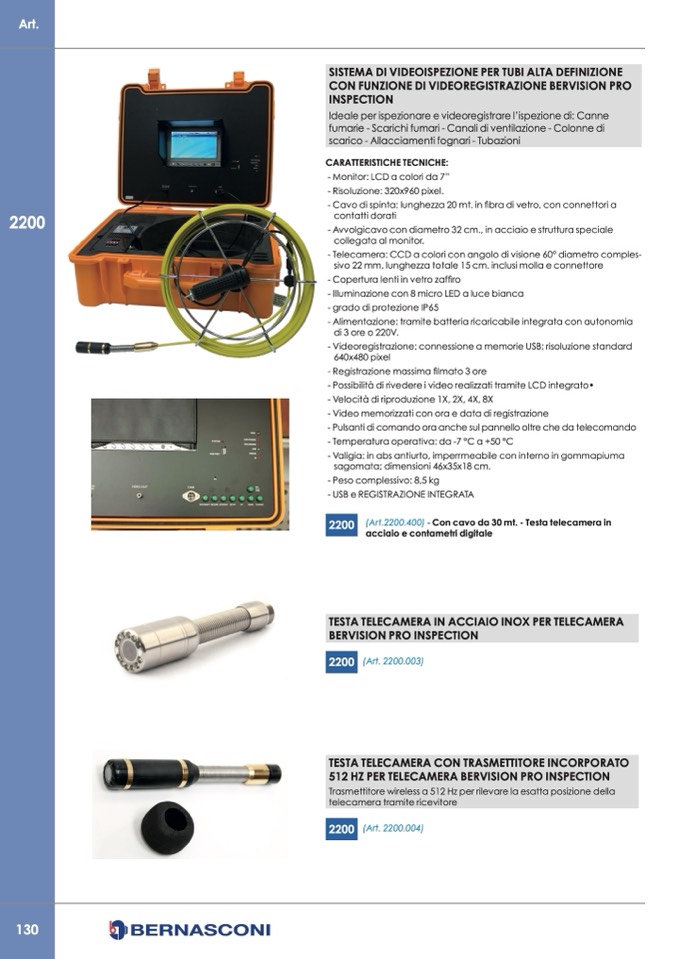 (Art.2200.400) - Con cavo da 30 mt. - Testa telecamera in