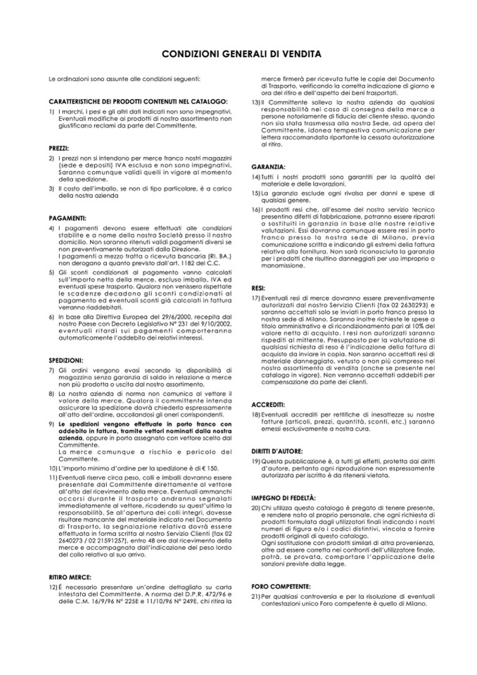 20)Chi utilizza questo catalogo è pregato di tenere presente,