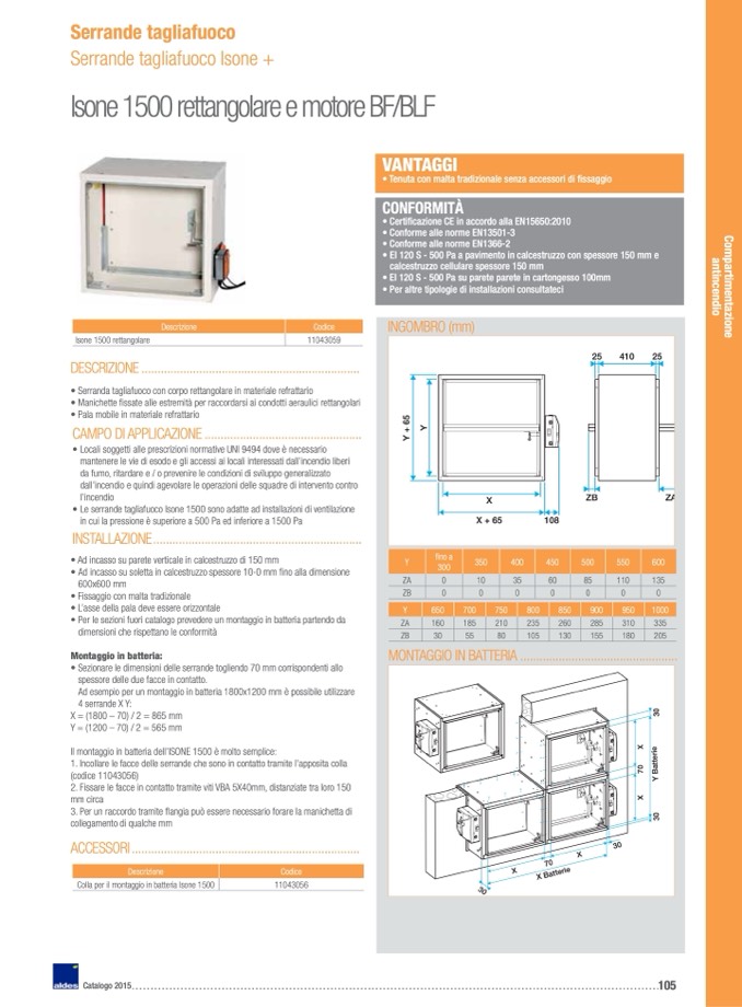 Le serrande tagliafuoco Isone 1500 sono adatte ad installazioni di ventilazione