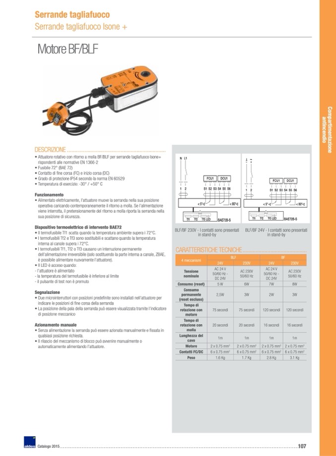 Attuatore rotativo con ritorno a molla BF/BLF per serrande tagliafuoco Isone+