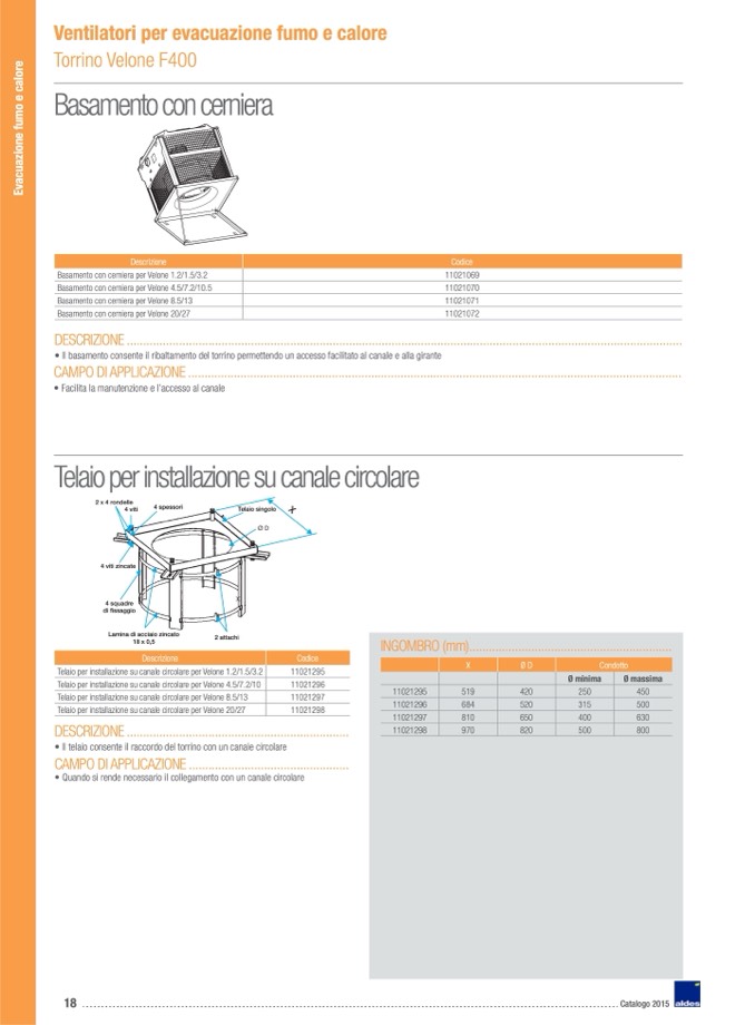 Telaio per installazione su canale circolare per Velone 1.2/1.5/3.2