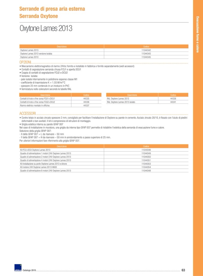 Nel caso di installazione in muratura, una griglia da interna tipo GFAP 007 permette di ristabilire l’estetica della serranda di evacuazione fumo e calore.