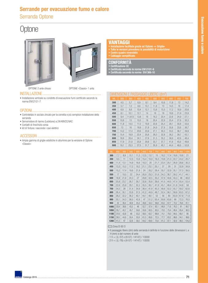 Il passaggio libero (dm) della serranda è definito in funzione delle dimensioni L e