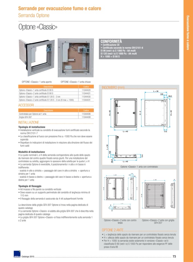 Optone «Classic» 2 ante certificato EI 120 S - 2 ore (H max = 1000)