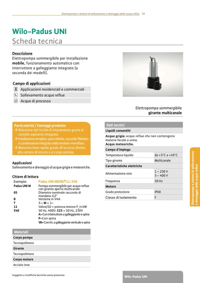 Elettropompe e sistemi di sollevamento e drenaggio delle acque reue 93