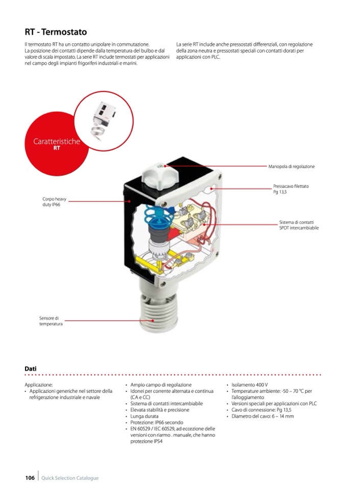 La serie RT include anche pressostati differenziali, con regolazione