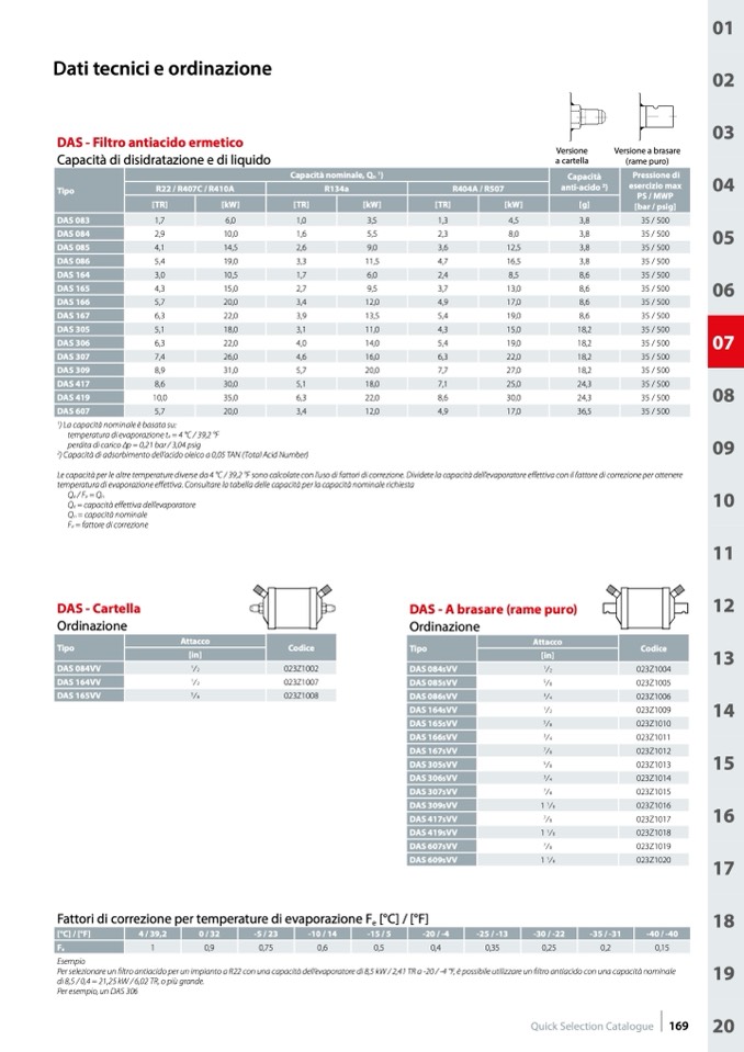 Per selezionare un filtro antiacido per un impianto a R22 con una capacità dell’evaporatore di 8,5 kW / 2,41 TR a -20 / -4 °F, è possibile utilizzare un filtro antiacido con una capacità nominale