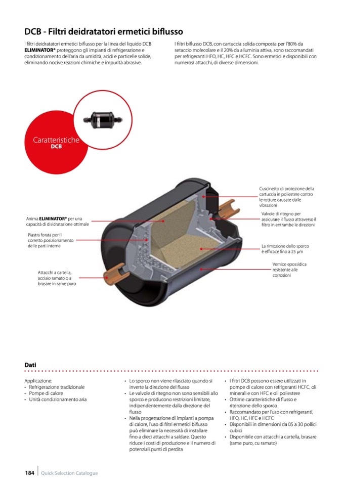 I filtri biflusso DCB, con cartuccia solida composta per l’80% da