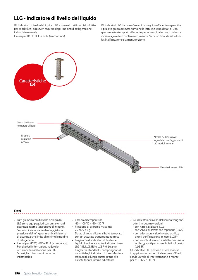 Gli indicatori di livello del liquido LLG sono realizzati in acciaio duttile