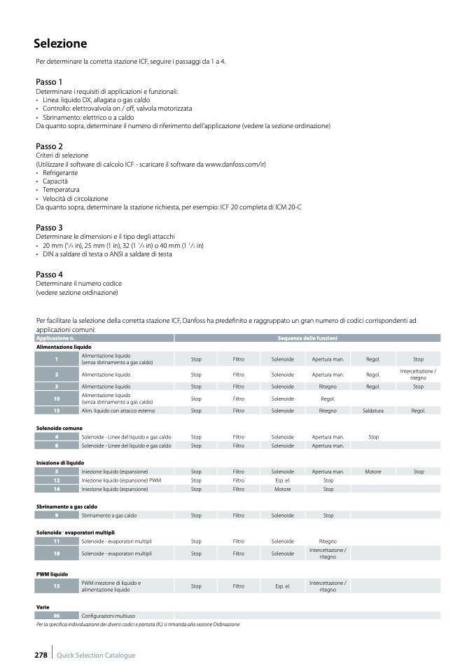 Per facilitare la selezione della corretta stazione ICF, Danfoss ha predefinito e raggruppato un gran numero di codici corrispondenti ad