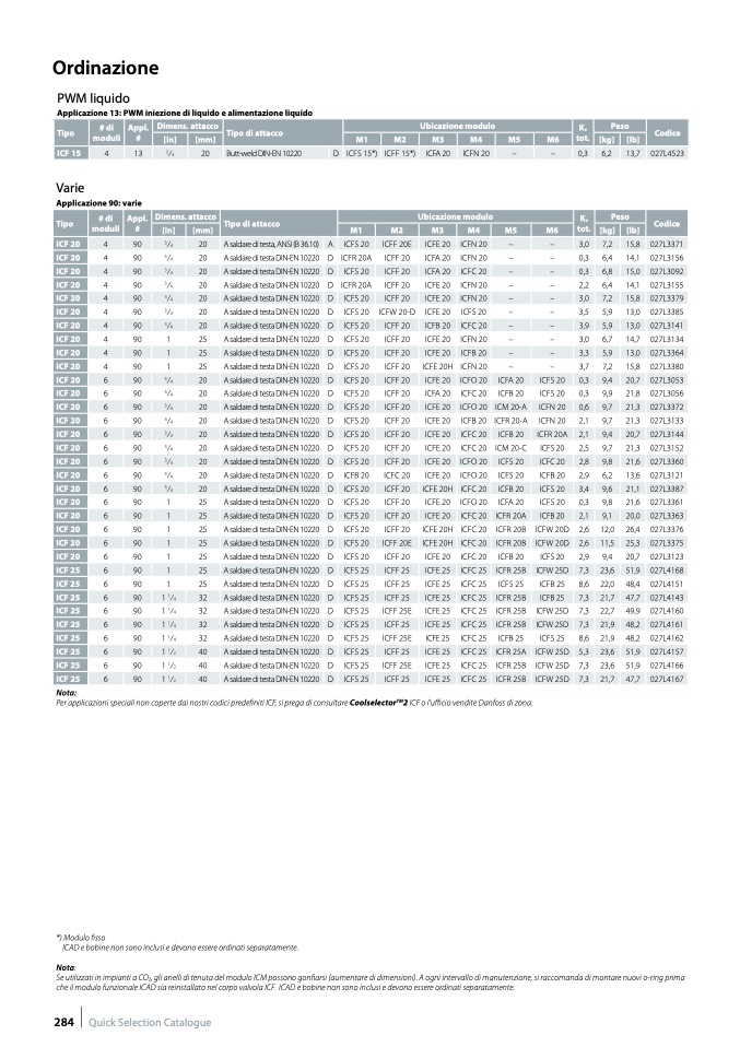 Per applicazioni speciali non coperte dai nostri codici predefiniti ICF, si prega di consultare Coolselector