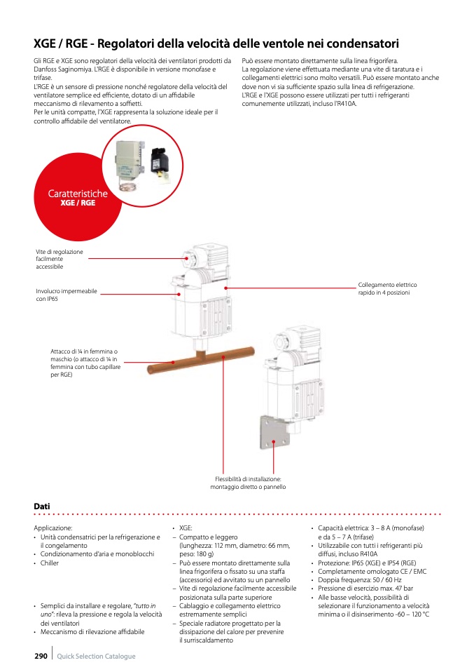 • Protezione: IP65 (XGE) e IP54 (RGE)
