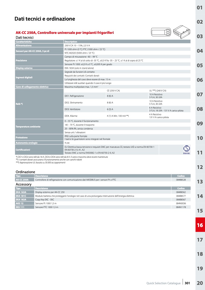 Controllore di refrigerazione con comunicazione dati MODBUS per i sensori Pt o PTC