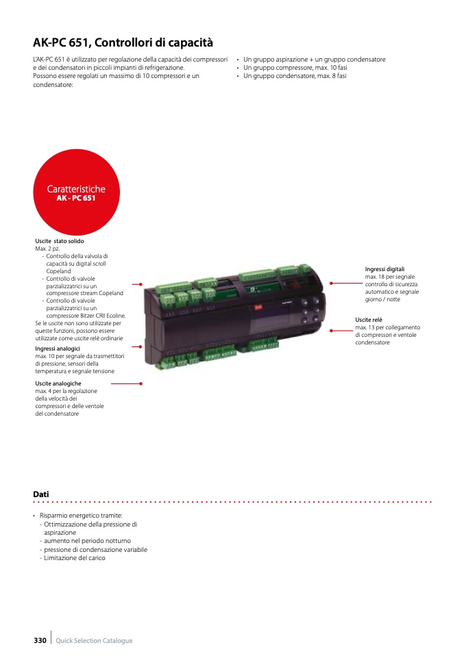 L’AK-PC 651 è utilizzato per regolazione della capacità dei compressori