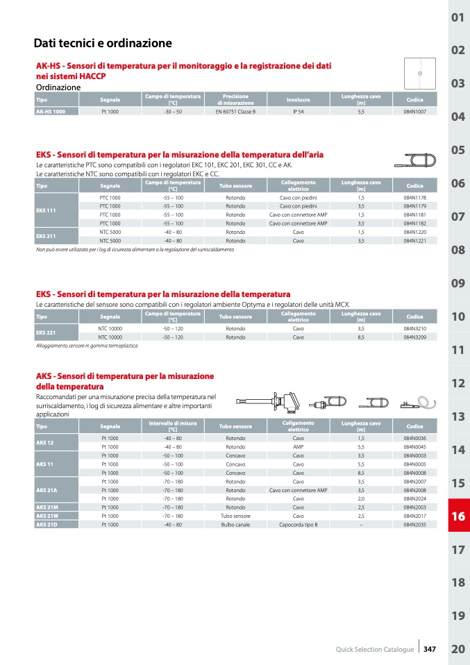Le caratteristiche PTC sono compatibili con i regolatori EKC 101, EKC 201, EKC 301, CC e AK.