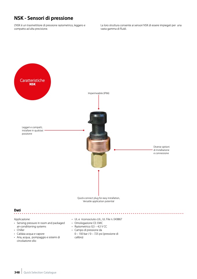 L‘NSK è un trasmettitore di pressione raziometrico, leggero e
