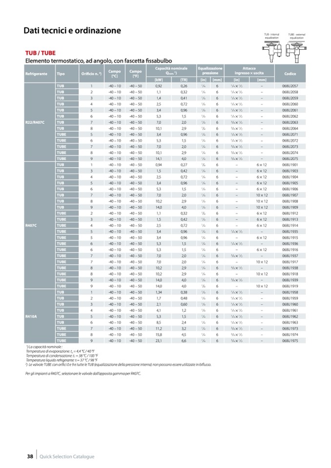 Per gli impianti a R407C, selezionare le valvole dall’apposita gamma per R407C.