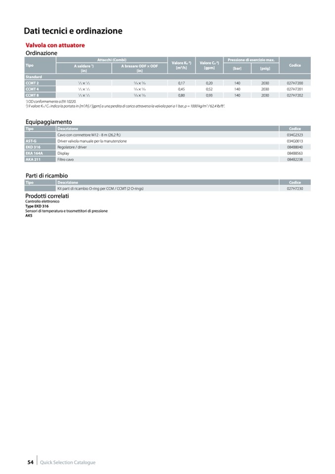 /h] / [gpm] a una perdita di carico attraverso la valvola pari a 1 bar, ρ = 1000 kg/m