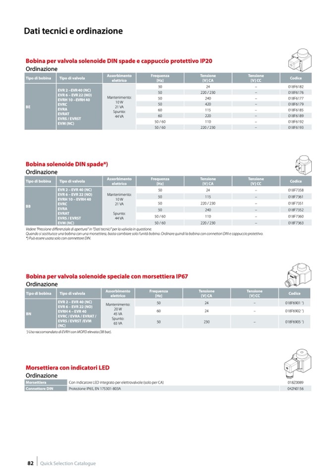 Quando si sostituisce una bobina con una morsettiera, basta cambiare solo l'unità bobina. Ordinare quindi la bobina con connettori DIN e cappuccio protettivo.