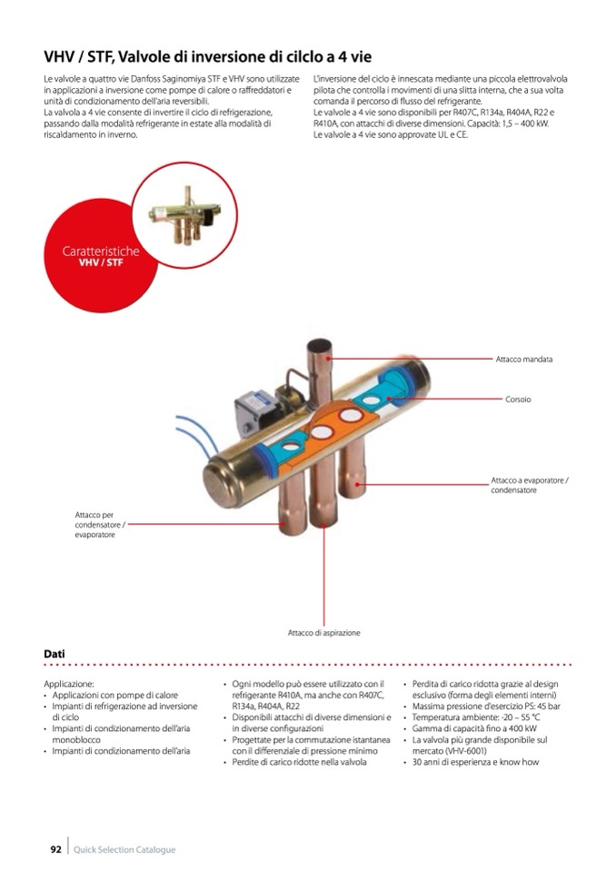 Le valvole a 4 vie sono disponibili per R407C, R134a, R404A, R22 e