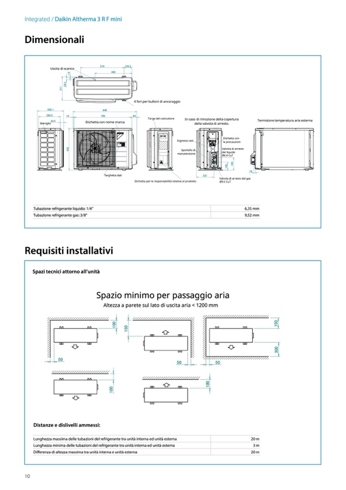 Tubazione refrigerante gas: 3/8”