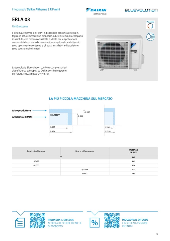 Il sistema Altherma 3 R F MINI è disponibile con unità esterna in