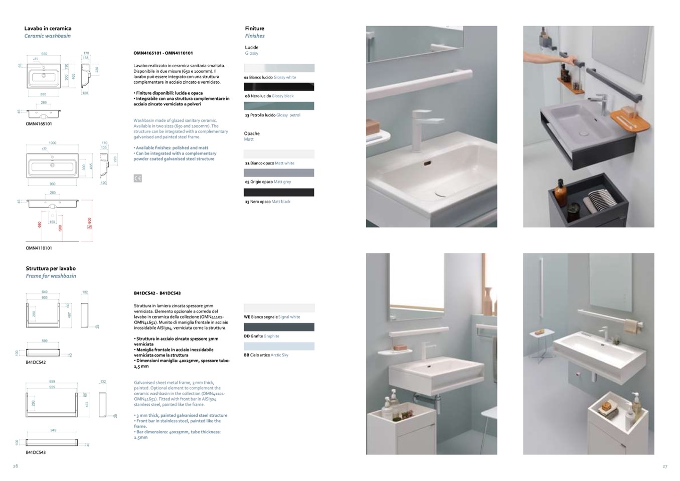 Lavabo realizzato in ceramica sanitaria smaltata.