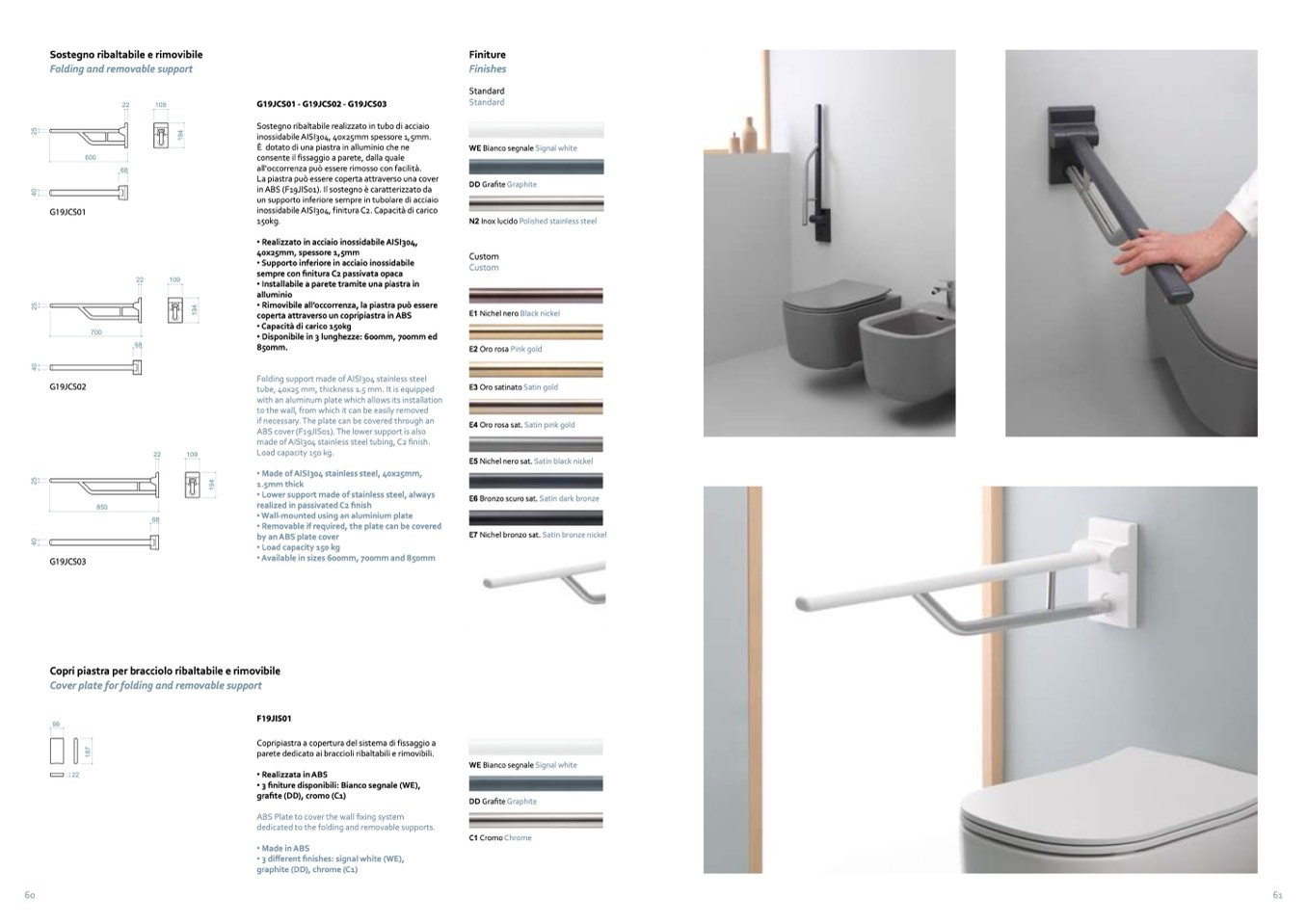 inossidabile AISI304, finitura C2. Capacità di carico