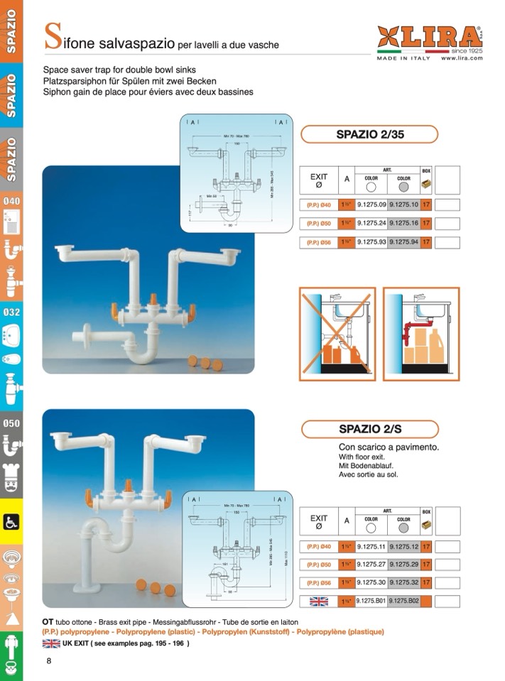Platzsparsiphon für Spülen mit zwei Becken