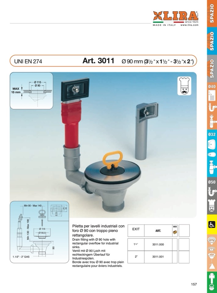 Piletta per lavelli industriali con