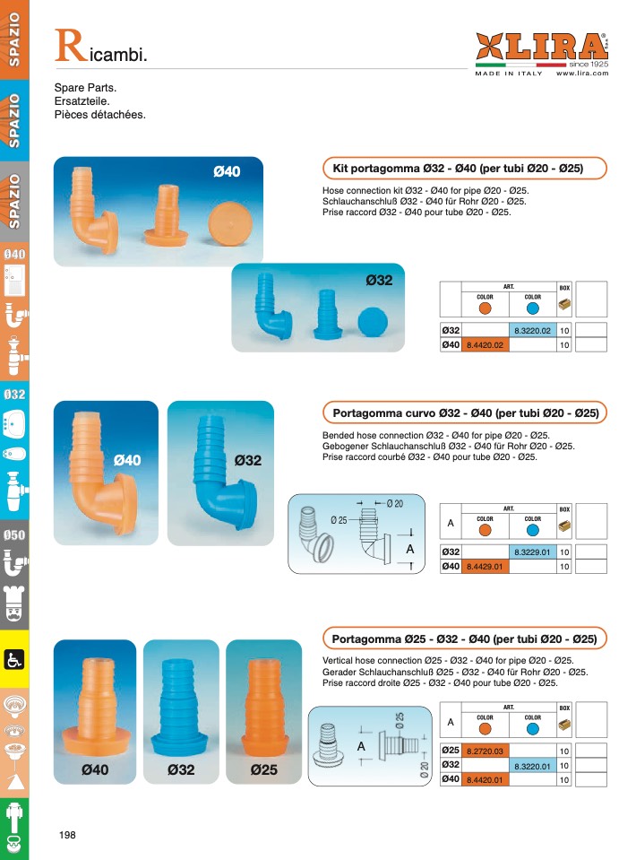Vertical hose connection Ø25 - Ø32 - Ø40 for pipe Ø20 - Ø25.