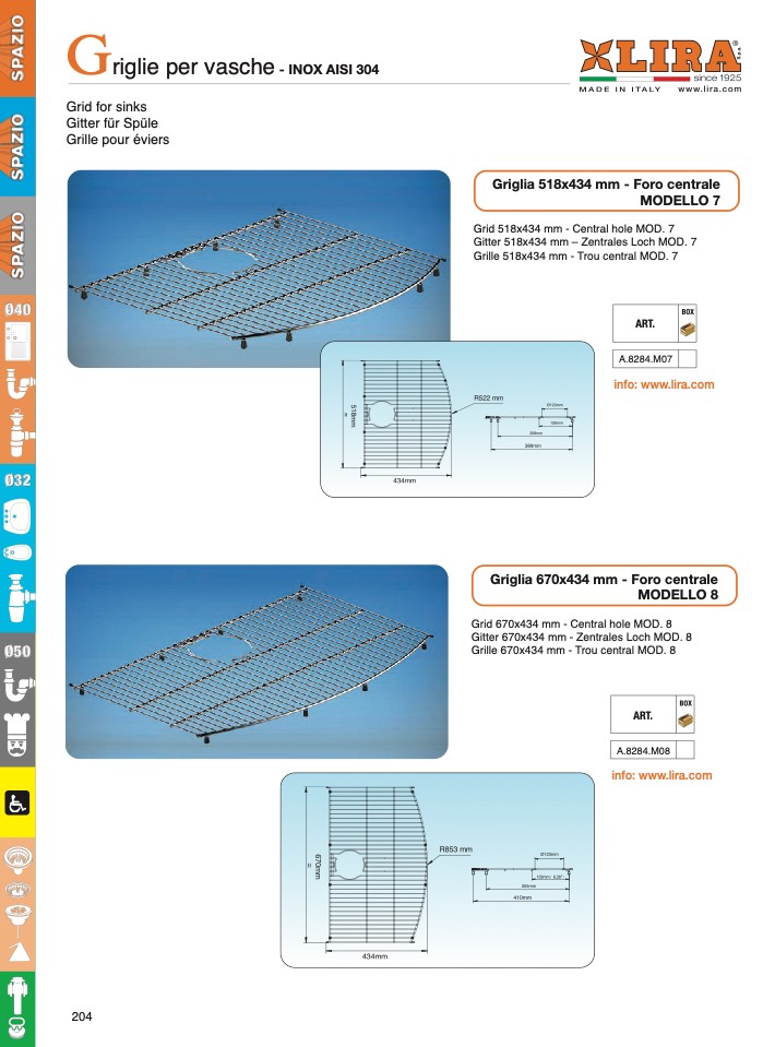 Gitter 670x434 mm - Zentrales Loch MOD. 8