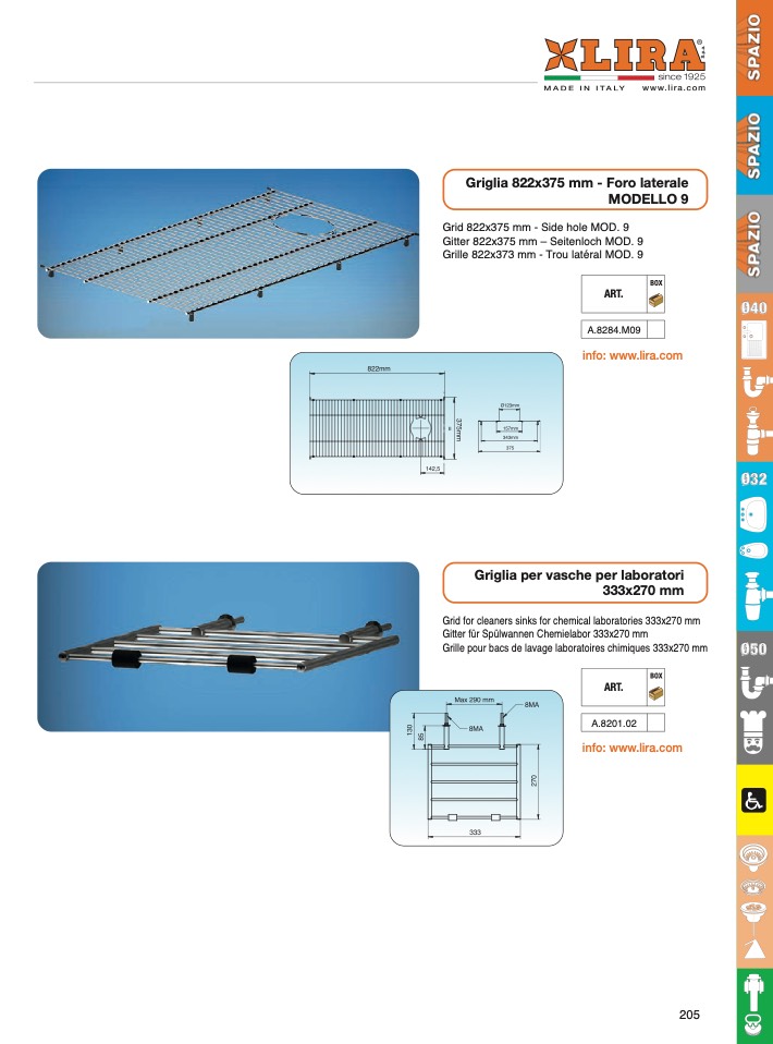 Gitter 822x375 mm – Seitenloch MOD. 9