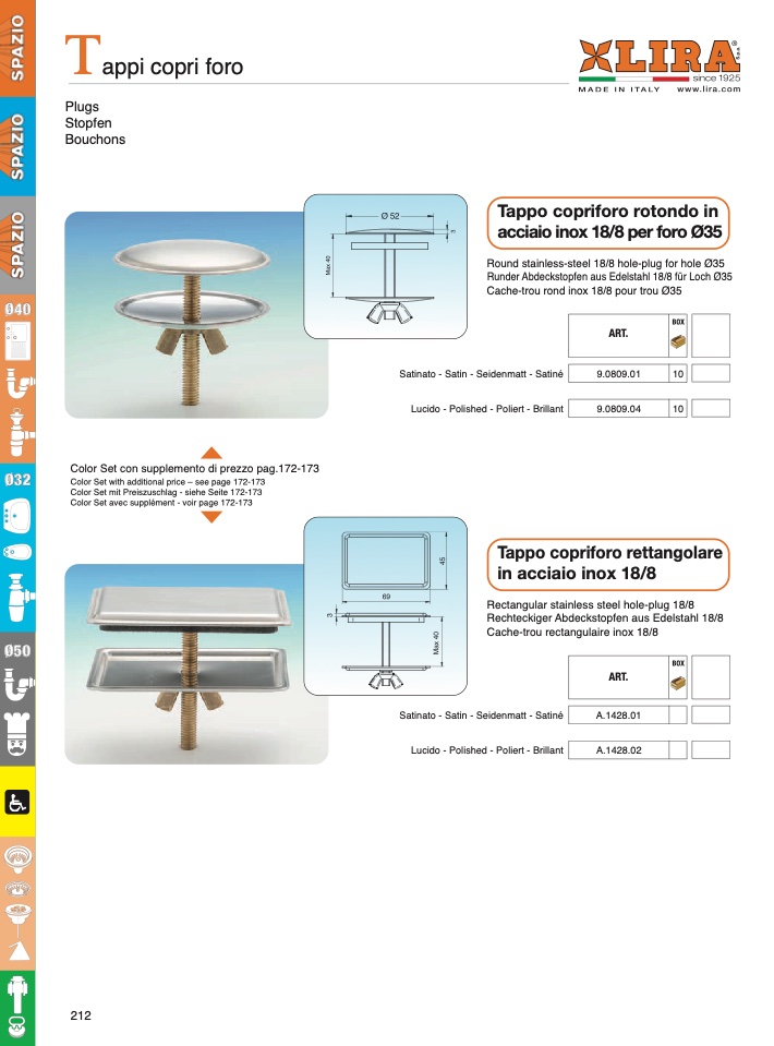 Round stainless-steel 18/8 hole-plug for hole Ø35