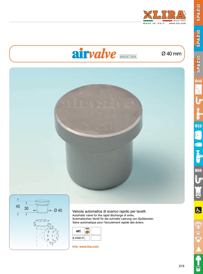 Valvola automatica di scarico rapido per lavelli.