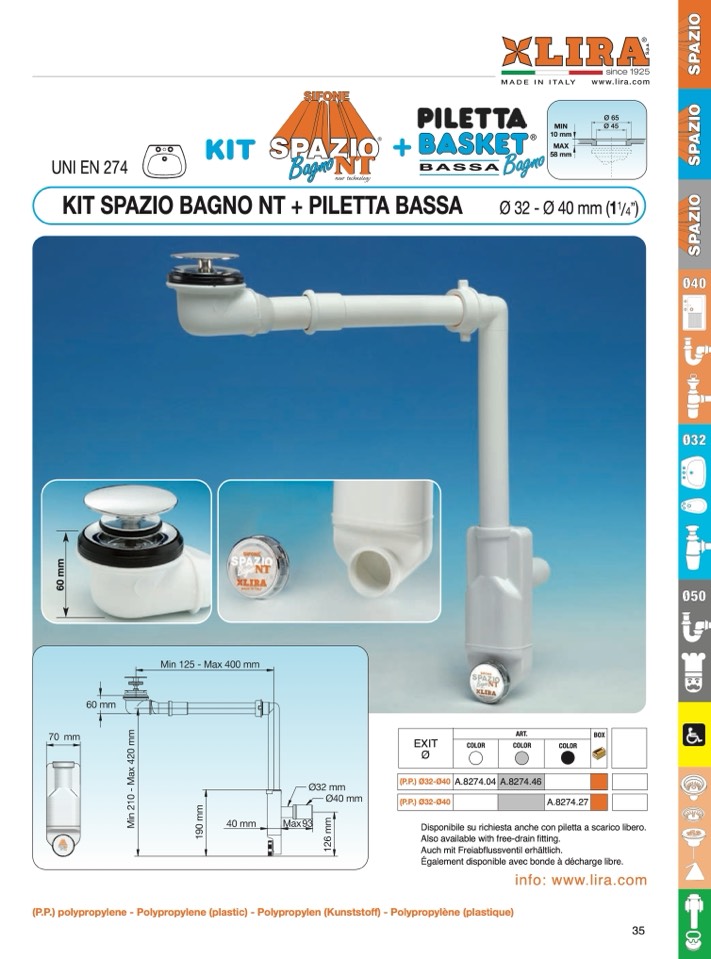 KIT SPAZIO BAGNO NT + PILETTA BASSA