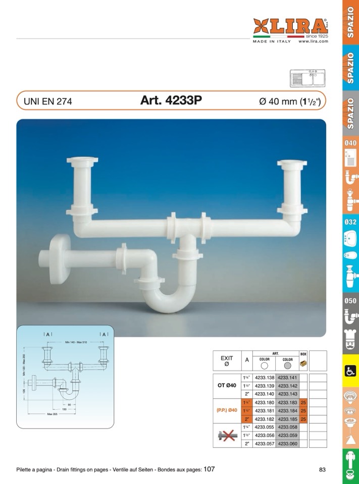 Pilette a pagina - Drain fittings on pages - Ventile auf Seiten - Bondes aux pages: