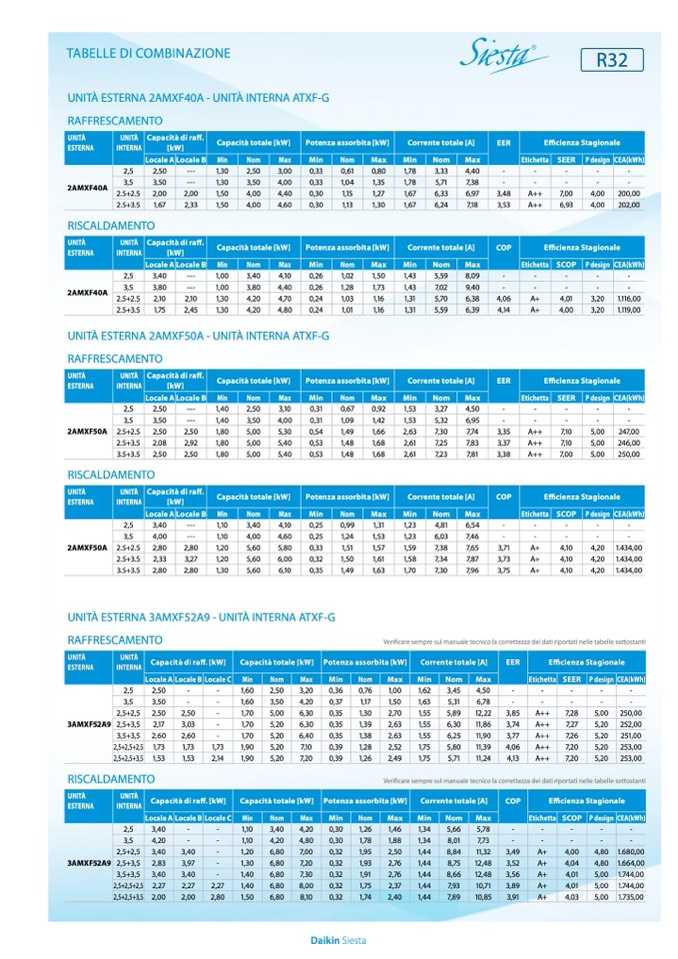 Verificare sempre sul manuale tecnico la correttezza dei dati riportati nelle tabelle sottostanti