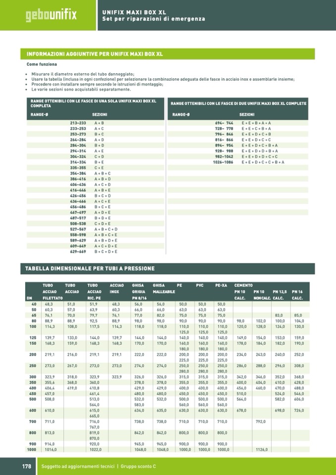 RANGE OTTENIBILI CON LE FASCE DI UNA SOLA UNIFIX MAXI BOX XL