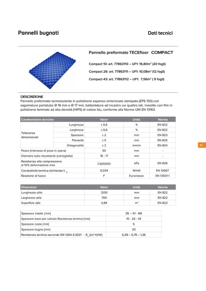 polistirene laminato ad alta densità (HIPS) di colore blu, conforme alla Norma UNI EN 13163.