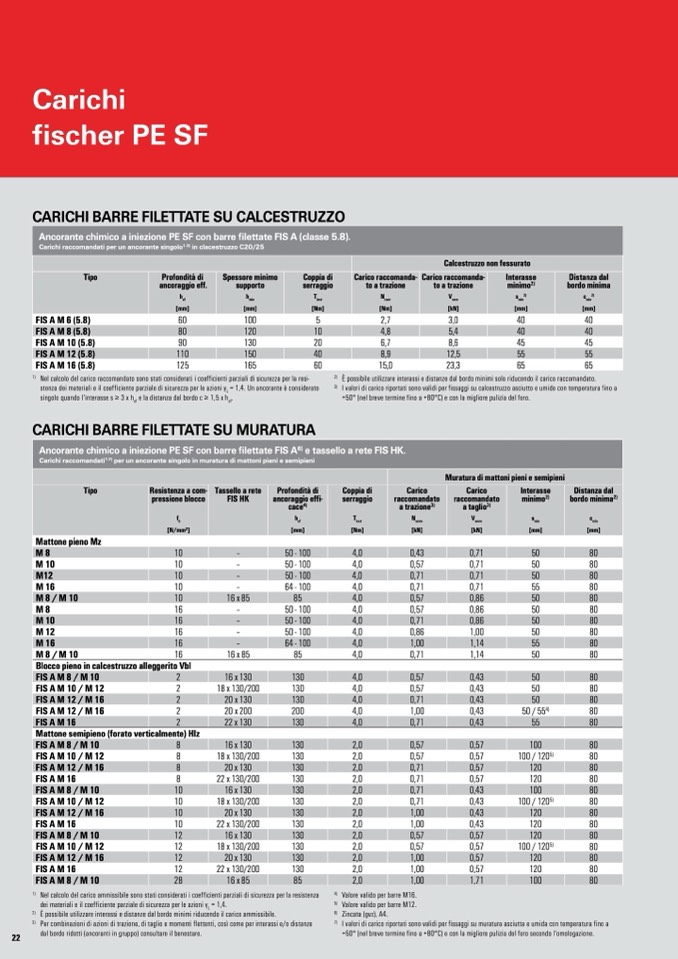 I valori di carico riportati sono validi per fissaggi su calcestruzzo asciutto e umido con temperatura fino a