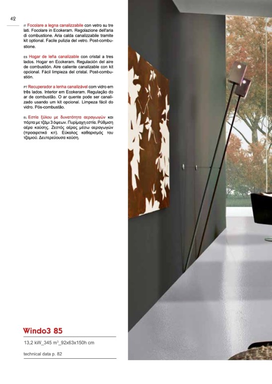 πόρτα με τζάμι 3 όψεων. Πυρίμαχη εστία. Ρύθμιση