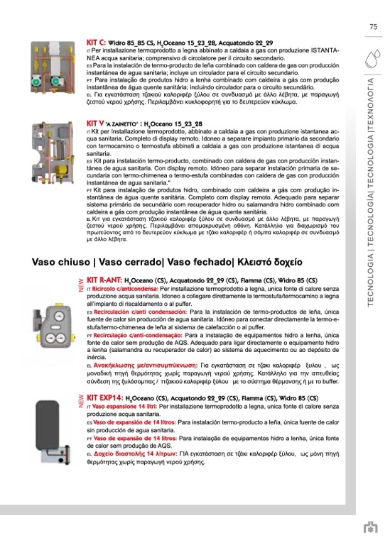 Κιτ για εγκατάσταση τζακιού καλοριφέρ ξύλου σε συνδυασμό με άλλο λέβητα, με παραγωγή