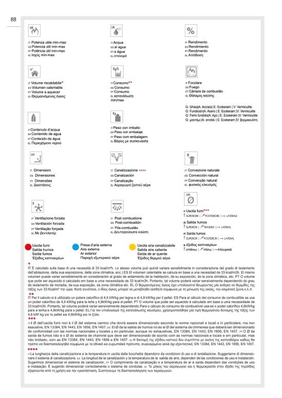 para a lenha e 4,8kW/kg para o pellet. EL Για τον υπολογισμό της κατανάλωσης καυσίμου, χρησιμοποιήθηκε μία τιμή θερμογόνου δύναμης της τάξης των